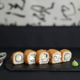 8 ნაჭერი, (350გრ) კრაბი შეზავებული საფირმო სოუსში, კრემყველი, კიტრი, ბრინჯი, ნორი, ჯინჯერი, ვასაბი, სოიოს სოუსი.