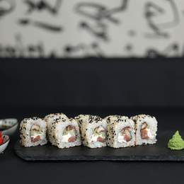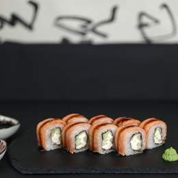 8 ნაჭერი, (420გრ) ორაგული, კრემ ყველი, ლავა სოუსი, ბრინჯი, ნორი, ჯინჯერი, ვასაბი, სოიოს სოუსი.