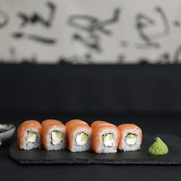 8 ნაჭერი, (310გრ) ორაგული, ავოკადო, კრემყველი, ბრინჯი , ნორი, ჯინჯერი, ვასაბი, სოიოს სოუსი