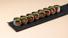 8 ნაჭერი, (340გრ) თინუსი, კრემყველი, კიტრი, ბრინჯი, ნორი, ჯინჯერი, ვასაბი, სოიოს სოუსი.