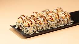 8ნაჭერი; (370გრ)კრევეტი, გაუდა, კრემ ყველი, სეზამი, სოუსები, პომიდორი, ბრინჯი, ნორი, ჯინჯერი, ვასაბი, სოიოს სოუსი