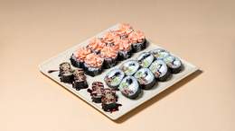 8 ნაჭერი; შეზავებული კრაბი, კრემყველი, კიტრი, სეზამი, გაუდა, სპეც სოუსები, ბრინჯი, ნორი, ჯინჯერი, ვასაბი, სოიო
