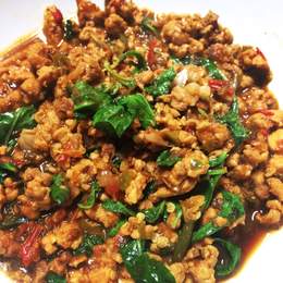 Pork/beef/chicken /Holy basil leaves , Bell Pepper,Garlic ,Fish sauce,Oyster sauce,Cooking oil,Meat