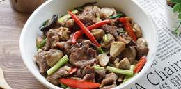 Slice Meat,Oyster sauce,Soy sauce,Sugar,Mushroom,Ground pepper,Cooking oil,onion,bell pepperts