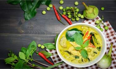 Pumpkin, Eggplant, Coconut, Basil, Yellow Curry Pasta, Bell Pepper