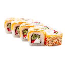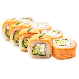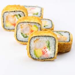 ტემპურა ორაგულით, ბრინჯი, ნორი, კრემ ყველი, ავოკადო