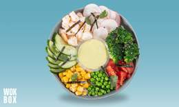 შებოლილი ქათამი, კრემ-ყველი, კიტრი, ბრინჯი, ნორი, სპაისის სოუსი