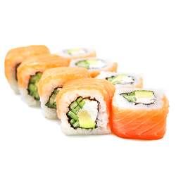 ბრინჯი, ნორი, ორაგული, კიტრი, ნაღების ყველი, ავოკადო