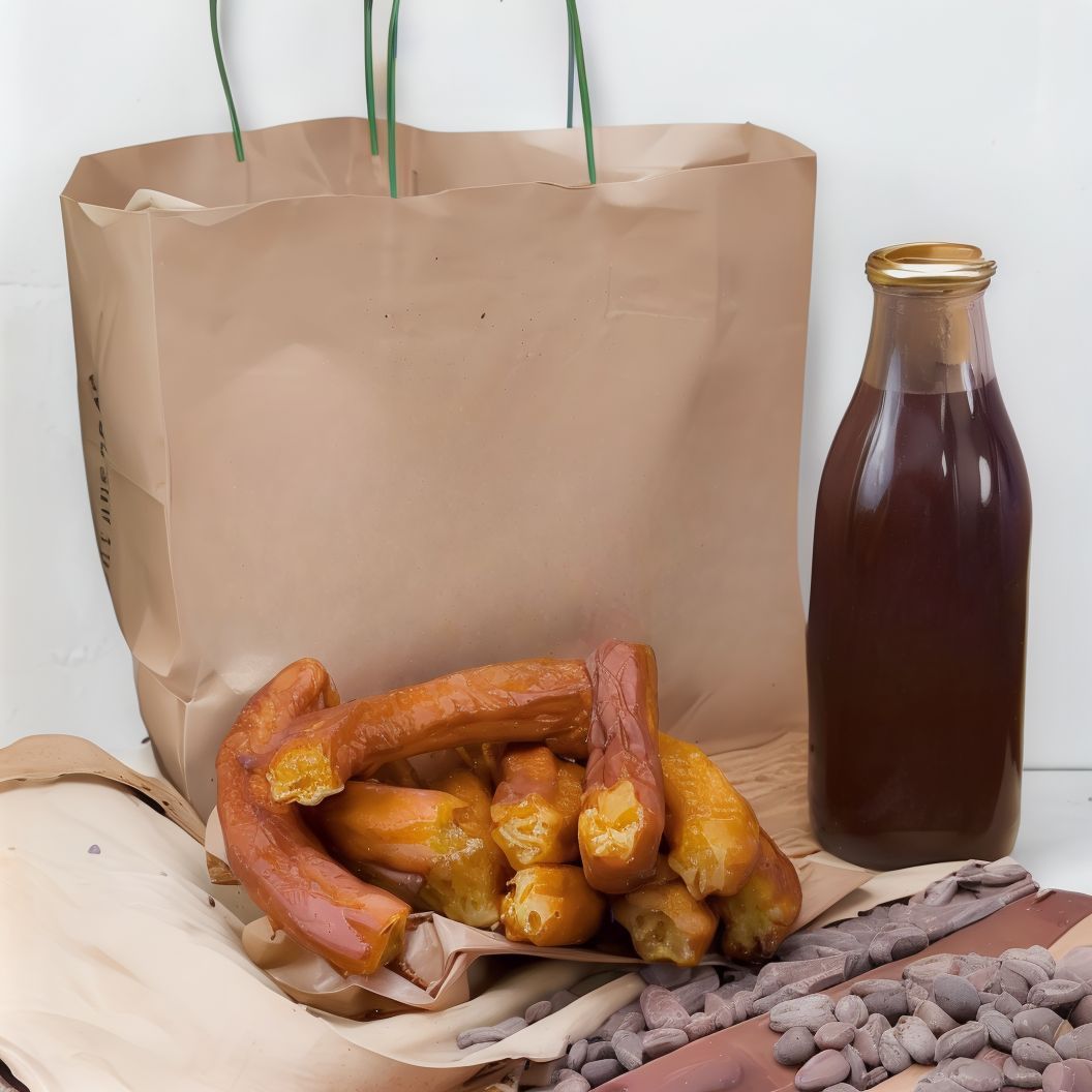 Botella de 500 ml de chocolate caliente con 6 porras. Pack para 2-3 personas.