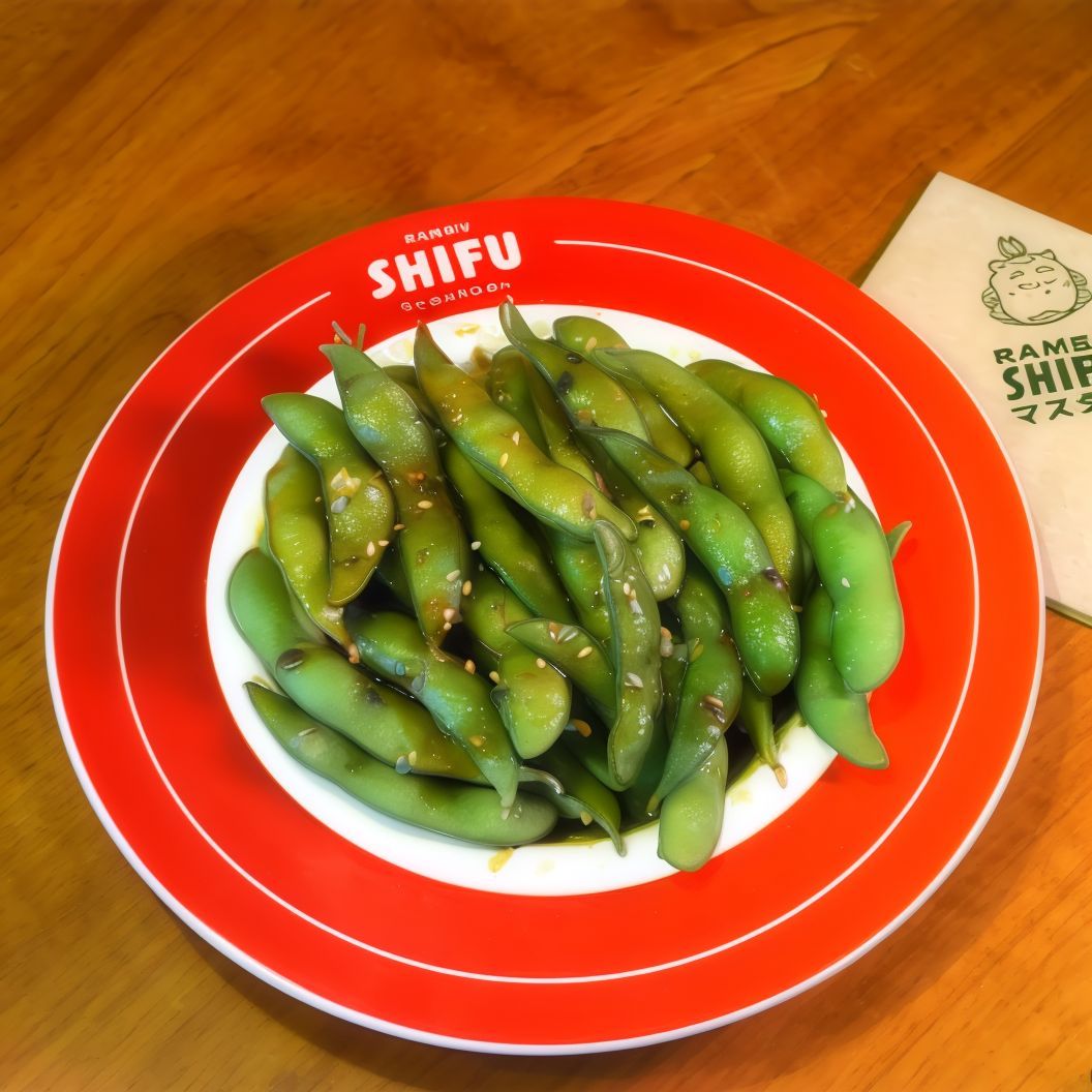 Vainas de soja hervidas salteadas con sal y salsa picante