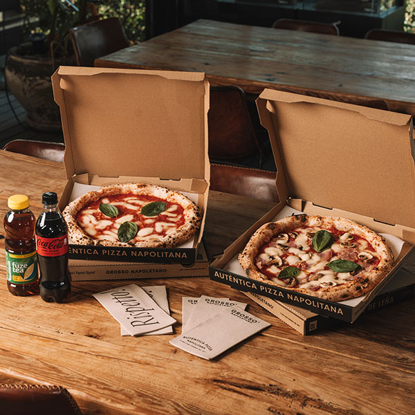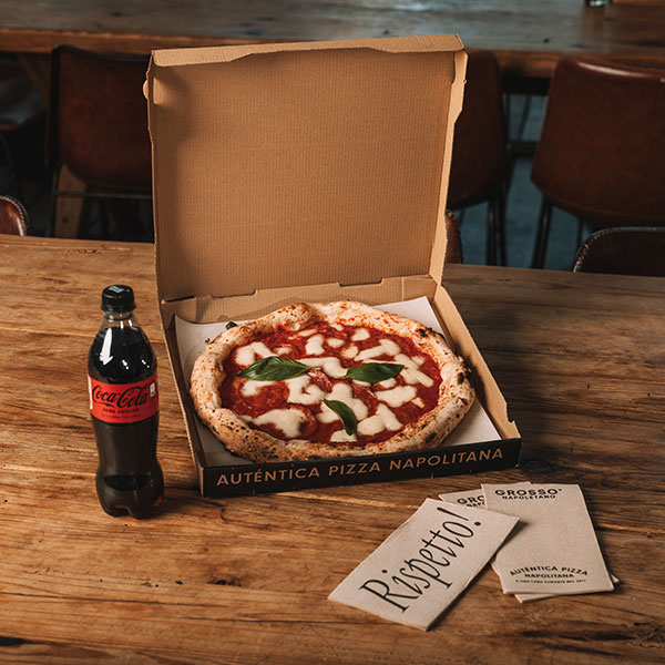 Auténtica pizza napolitana SIN GLUTEN en horno de leña. **ATTENZIONE! No sé realizarán modificaciones ni adaptaciones de los productos de la carta**