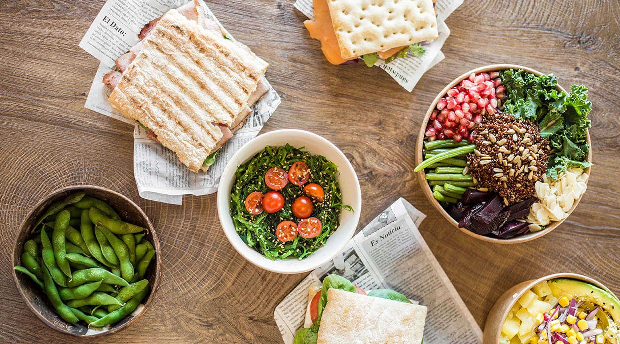 Heüra sobre nuestra selección de brotes gourmet con kale rizada, tomates cherry, brotes de soja, arroz de sushi y sésamo.Escoge entre nuestra vinagreta de albahaca o la de miel y mostaza