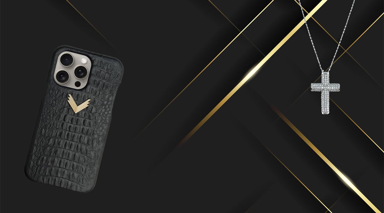 Husă Telefon iPhone 15, Piele Vițel, Textură Aligator, Negru/Gold, VELANTE