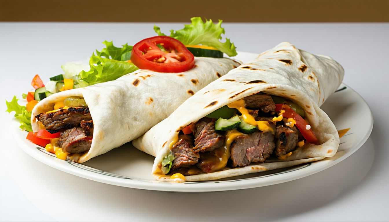 Соковите м'ясо овочі та соуси,загорнуті у хрусткий лаваш