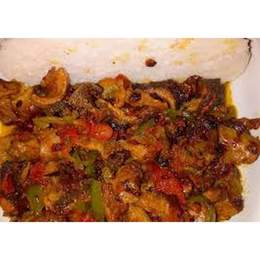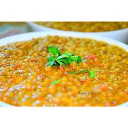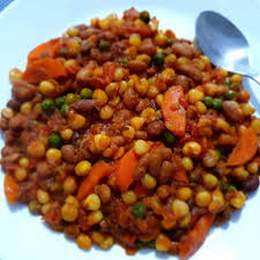 Beans cooked with vegetables such as onions, tomatoes, carrots and served in gravy