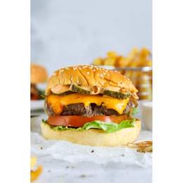 Grilled Minced Meat Pate Served In A Burger Bun Served With Fries