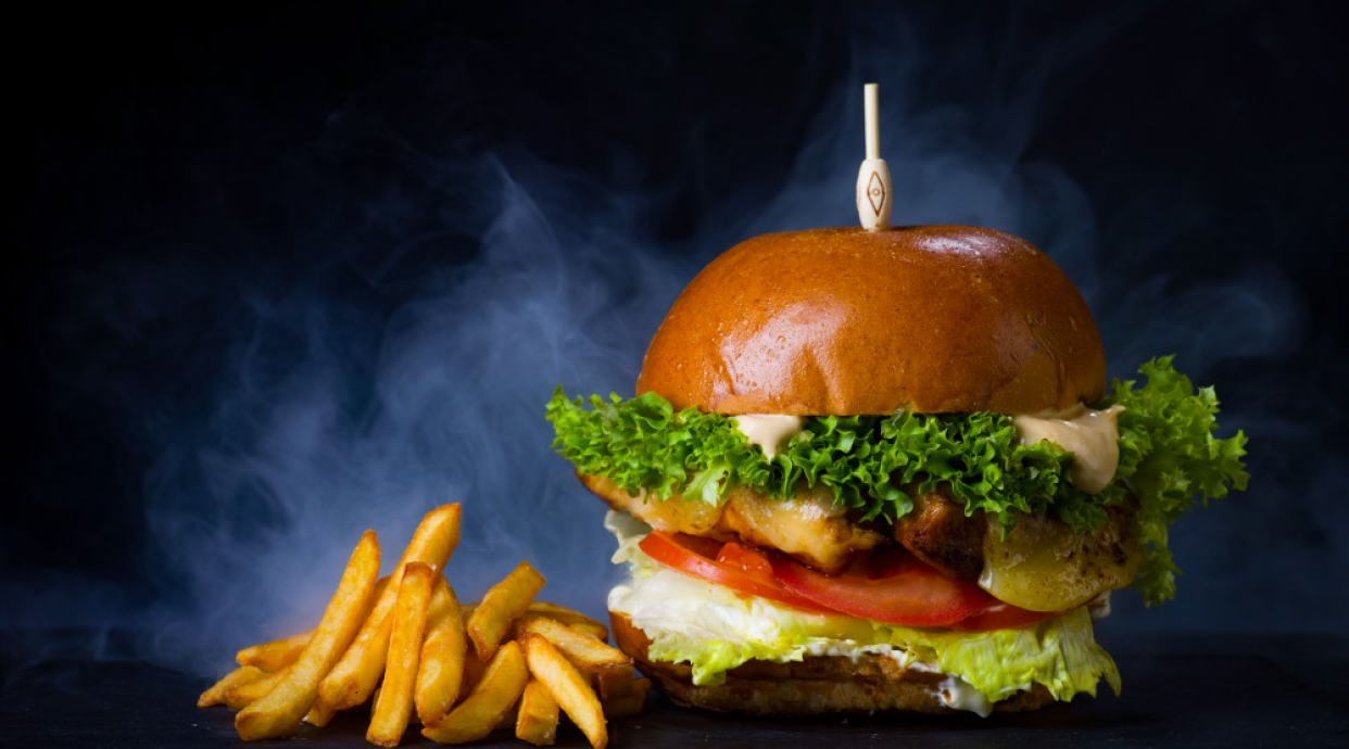 Булочка Бріош, Сир чедер, Яловича котлета, огірки Мариновані, соус Брусничний, соус Айолі, салат Айзберг, соус сирний, Сир Моцарела темпура, Кортопля Фрі.Вага: 520 грамів