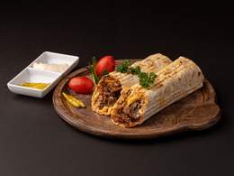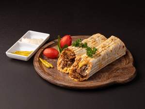Мягкий лаваш приправленный лазджаном, который придает изысканный и бодрящий вкус блюду. Маринованное говяжье мясо, соленные огурцы, лук и ароматный белый соус прекрасно дополняющий своим вкусом