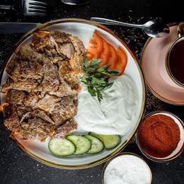 Большой лаваш, говядина или курица, свежие овощи, фирменный соус