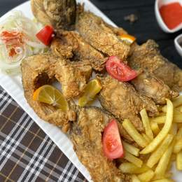 Рыба -Сазан, весом 1кг 300 гр. (в сыром) в комплекте с картошкой фри.