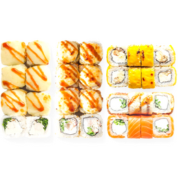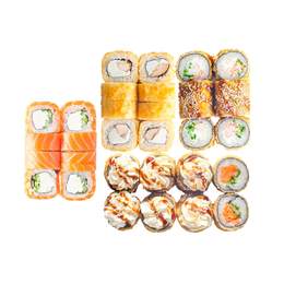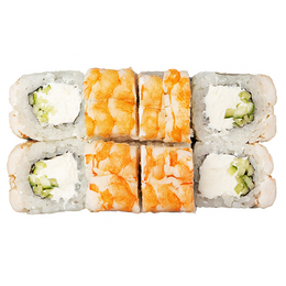 Норвежский лосось, креветка, угорь, сыр Cremette и фирменный соус