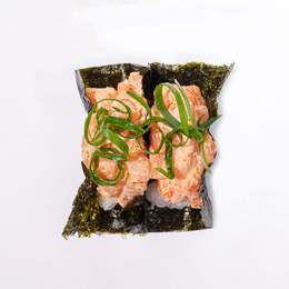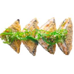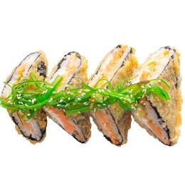 Ролл с лососем, томаго и спайси соусом, завернутый в хрустящее тесто харумаки и обжаренный в темпуре — насыщенный вкус и аппетитная золотистая корочка.