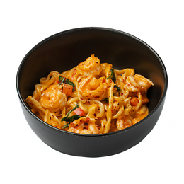 Ароматное блюдо с обжаренным луком, болгарским перцем и креветками, пропитанное бульоном том ям и кокосовым молоком. Лапша лагман, с насыщенным соусом, украшена хлопьями чили. Идеально сбалансированное и яркое блюдо для любителей восточной кухни