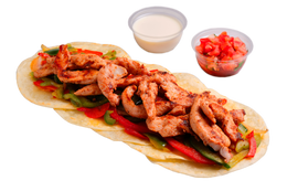 Стейк из куринной грудки, овощи Фахитас, три Тортильи, соус Сальса, Соус Сметана.
