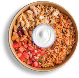 Обжаренный рис, микс бобов.мясо на выбор, соус "Сальса" и сметана