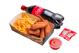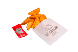 В пшеничную тортилью заворачивается на выбор: говядина или курица стейк или ассорти, картофель фри, салат кол слоу, сальса классическая и соус Тар Тар. Далее это все обжаривается в тортильи на плите