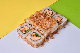 В пшеничную тортилью заворачивается начинка на выбор, риса, бобов, сыра и 2х соусов. Дополнительно обжаривается для большей пикантности.