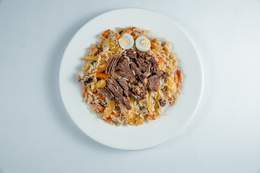 Рис "Лазер", говядина мясо, морковь, яйцо перепелиное