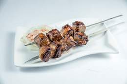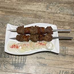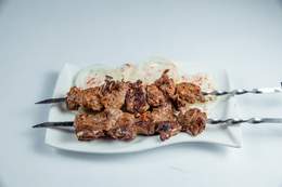 Говядина спинка, курдюк. лук репчатый, уксус.