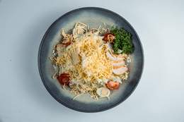 Говядина мякоть, лапша, помидор, огурцы, омлет, зелень