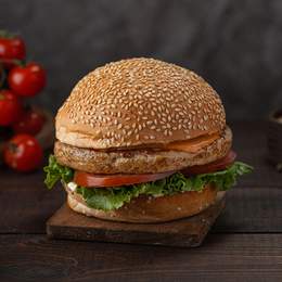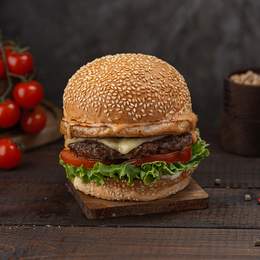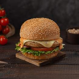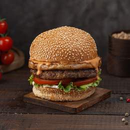 Нежная говяжья котлета с ароматным соусом и свежими овощами, заключенная в мягкую булочку, дарит простое, но непревзойденное удовольствие
