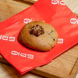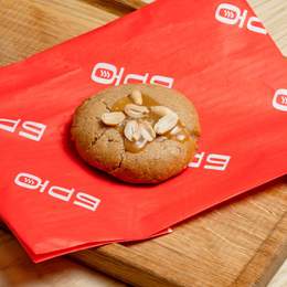 Хрустящее печенье с тягучей карамелью, ореховым вкусом и соленым акцентом.