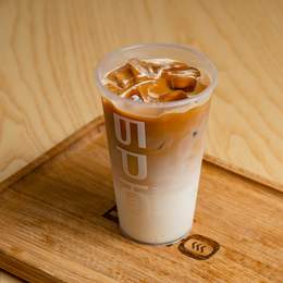 Охлажденный кофейный коктейль с молоком и легкой пенкой.
