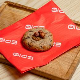Плотное печенье с хрустящей корочкой и тягучей шоколадной начинкой.