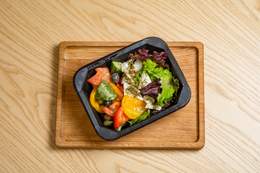 Овощной салат с фетой, маслинами и оливковым маслом.