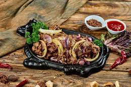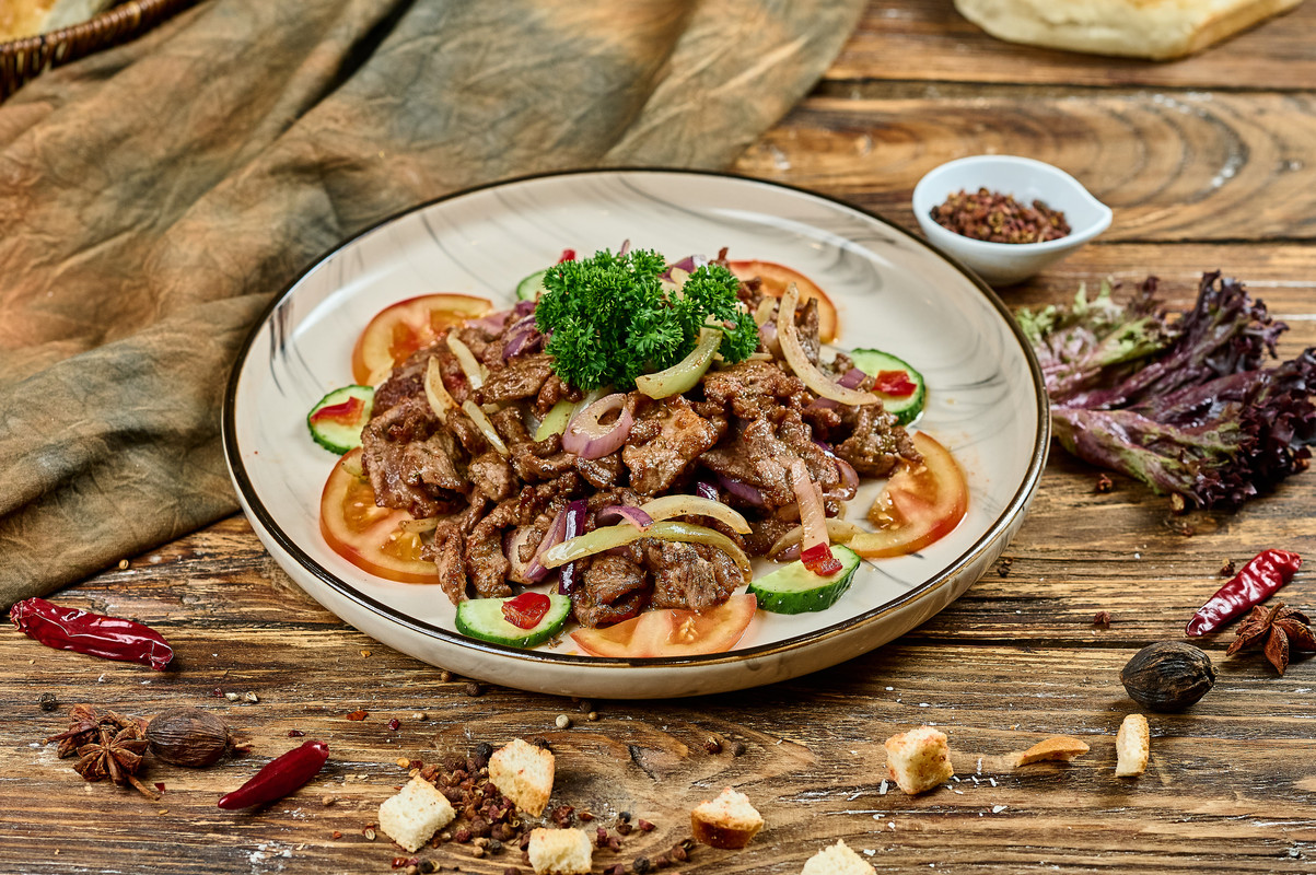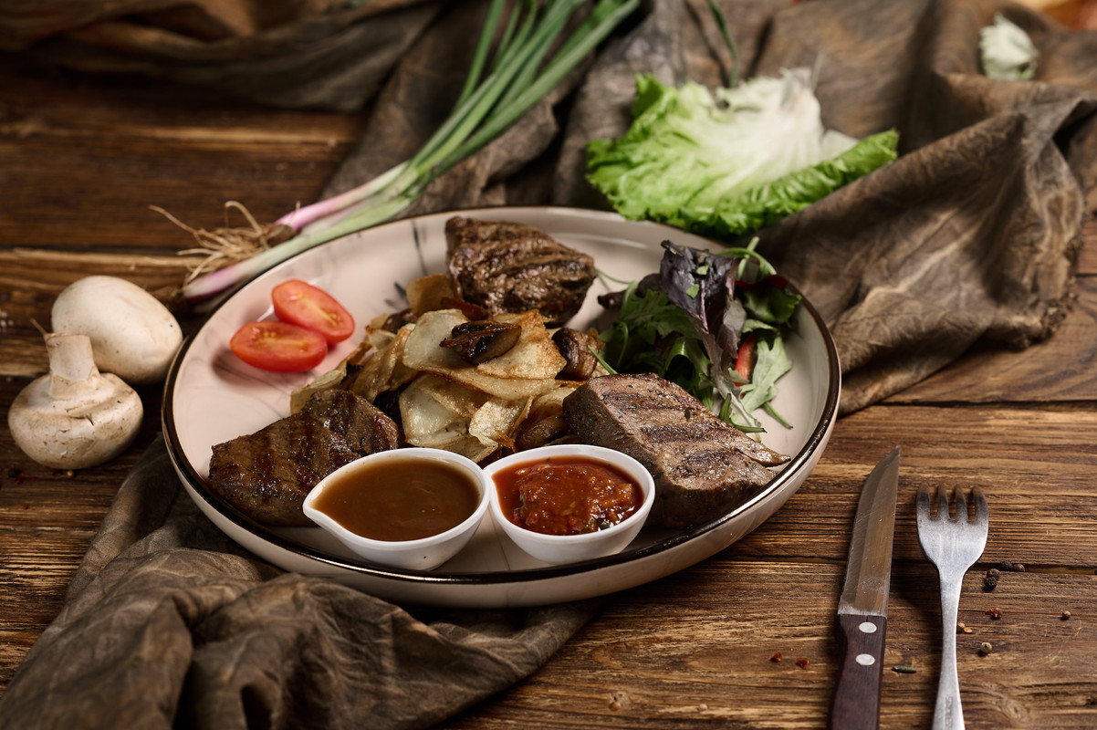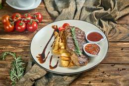 Сочный и нежный стейк, приготовленный из отборной говядины, с характерным ароматом и великолепной текстурой. Идеален для любителей насыщенного мясного вкуса, подается с гарниром и соусом по выбору.