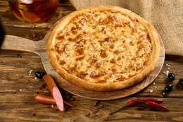 Куриная грудка, фаршированная сыром и копченой говядиной, подается со сливочным соусом на подушке из пюре