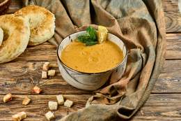 Нежный суп-пюре из чечевицы с добавлением ароматных специй и овощей, богатый белком и клетчаткой, прекрасно согревает и насыщает.