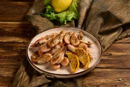 Рукола и креветки заправленные лимонным дрессингом, под бальзамическим соусом