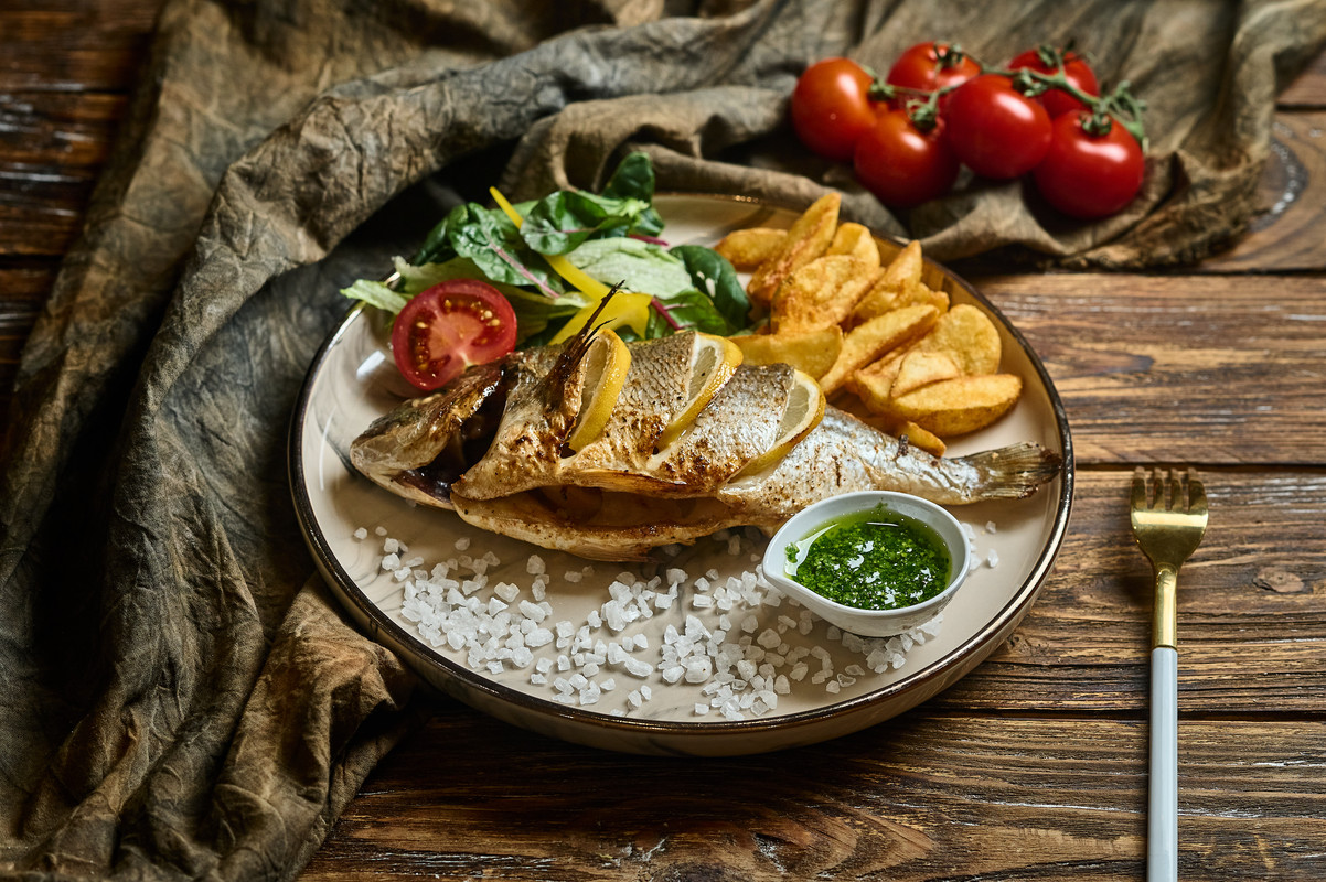 Традиционный рыбный суп с нежным вкусом судака, свежими овощами и пряными травами, идеально сбалансированный для ценителей морских деликатесов.