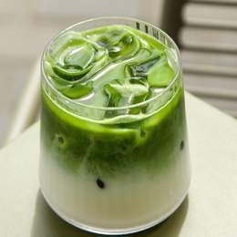 Холодный, нежный напиток на основе матчи и сиропом карамели
