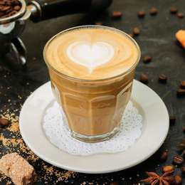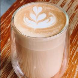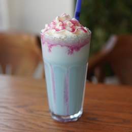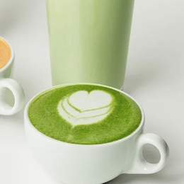 Фирменно приготовленный нежный матча с молоком, на выбор зелёная и голубая матча.