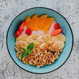 Хрустящая смесь из овсянки, сухофруктов, орехов и меда, с добавлением манго