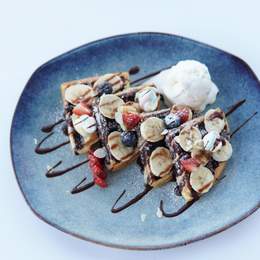 Бельгийские вафли мо свежими бананами и шоколадной пастой