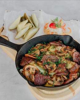 Это блюдо представляет собой медальоны, приготовленные по особому рецепту, и подается с густым соусом