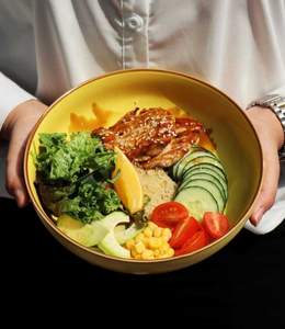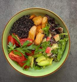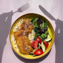 Куриное филе в соусе терияки, рис с кукурузой, салат из свежих овощей